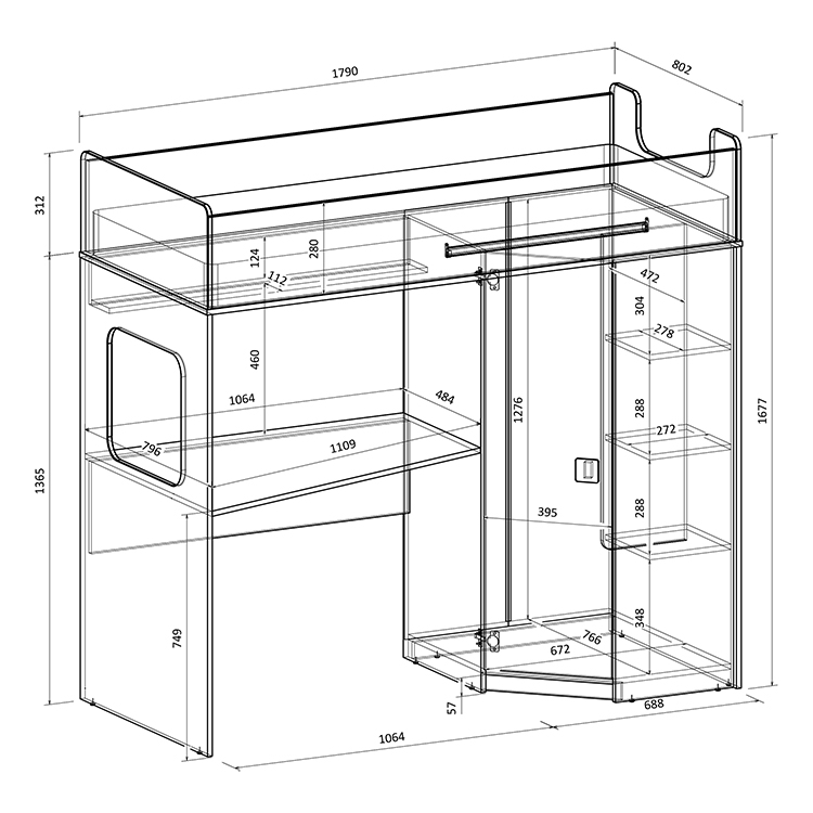 Учебная зона со столом под спальным местом открывает возможности для письменных работ,а также здесь удобно расположить ноутбук.